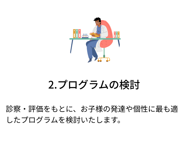 お子様一人一人の発達や個性に合わせ、家庭や集団での生活を考えた対応を心がけています。